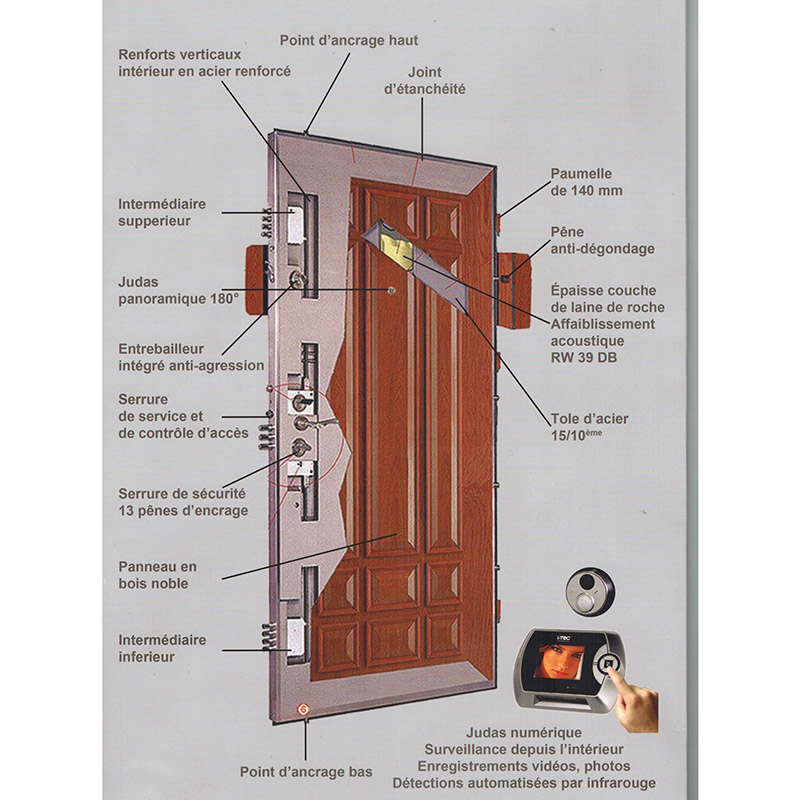 Conçue pour résister aux effractions, la porte blindée est équipée de dispositifs de sécurité performants : serrure multipoints, paumelles renforcées, blindage de la serrure, etc. Elle offre ainsi une protection optimale à votre habitation.
